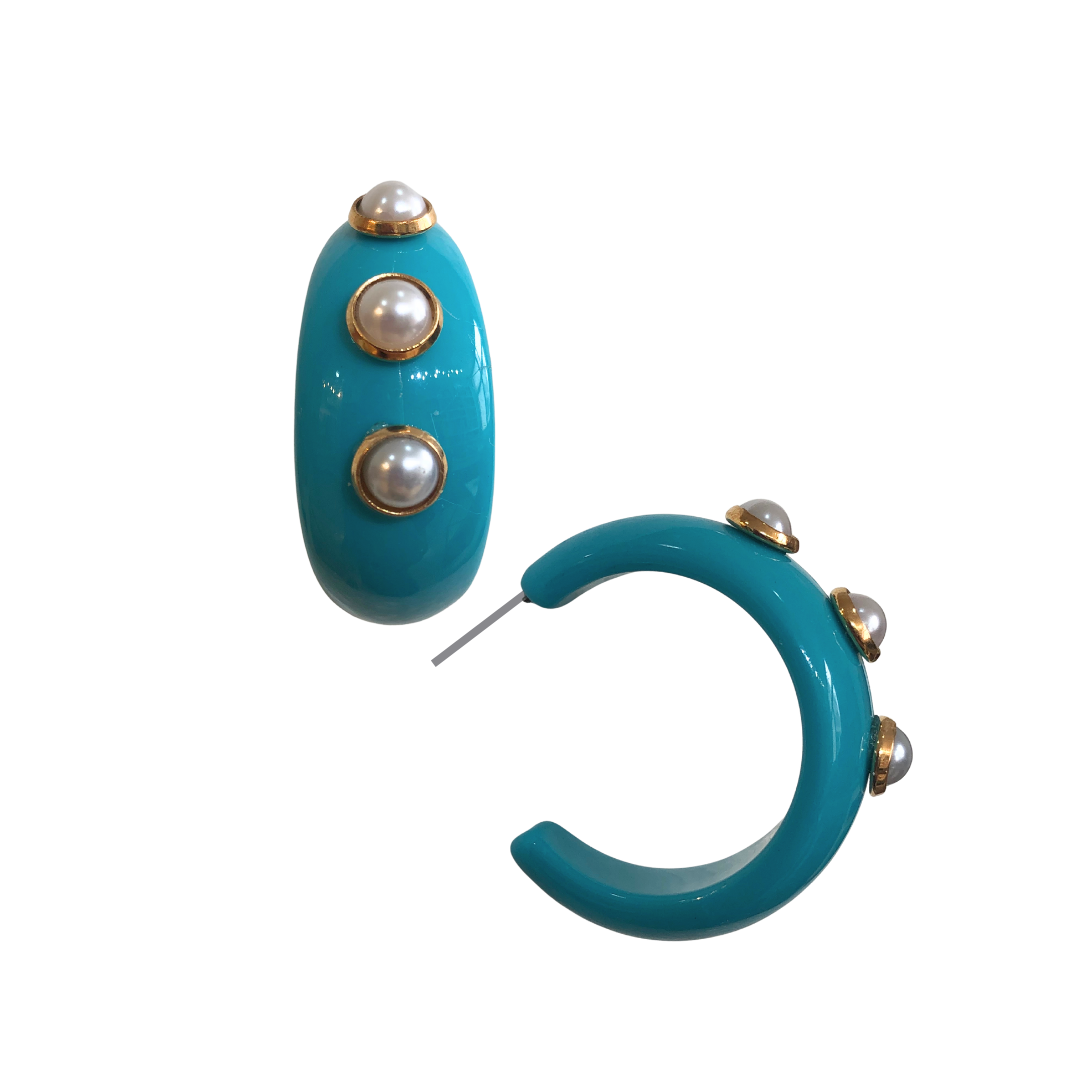 Argola Acrílica Turquesa com Pérolas BG2036 - Daniela Curvelo