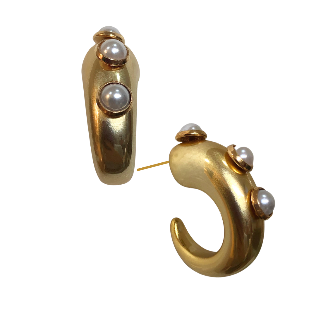 Argola Dourada Fosca com Aplicações de Pérola BM2030 - Daniela Curvelo