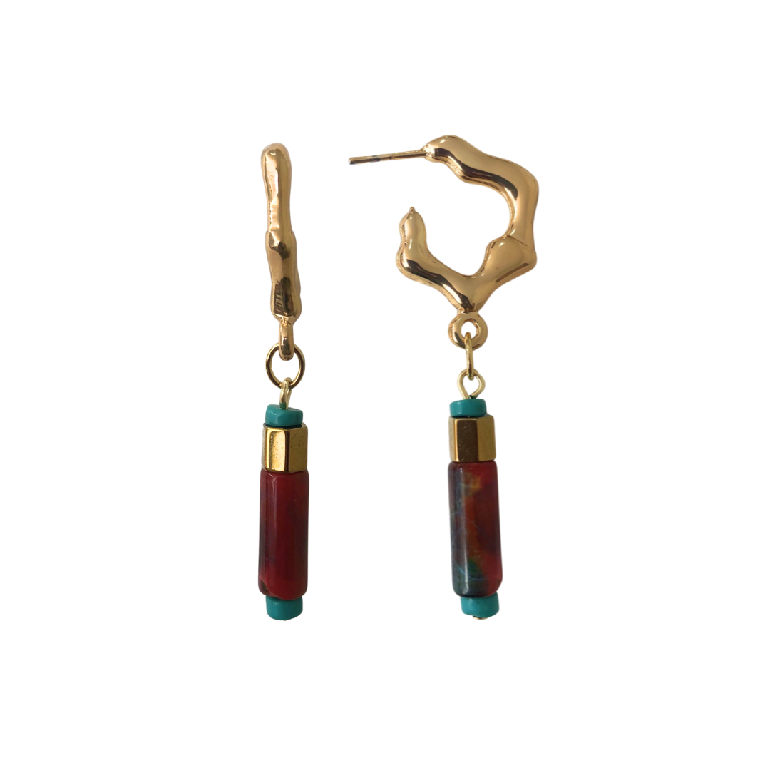 Argola média artesanal, feita à mão na loja, com design exclusivo que combina banho dourado, pedra natural e hematita dourada. Cada peça é produzida com cuidado e acabamento refinado, resultando em um acessório sofisticado, moderno e com destaque visual. Ideal para quem busca joias autorais e com identidade.