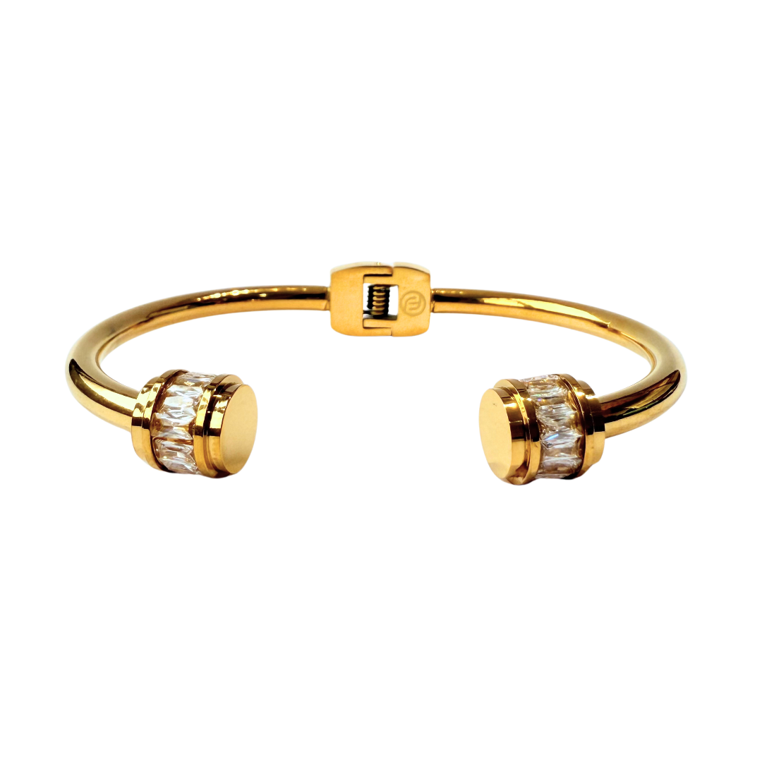 Bracelete de Aço Dourado Aberto com Zircônias 801P - Daniela Curvelo