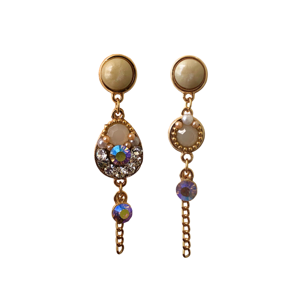 Brinco Assimétrico Bege com Furta-cor e Corrente Dourada BM2168 - Daniela Curvelo