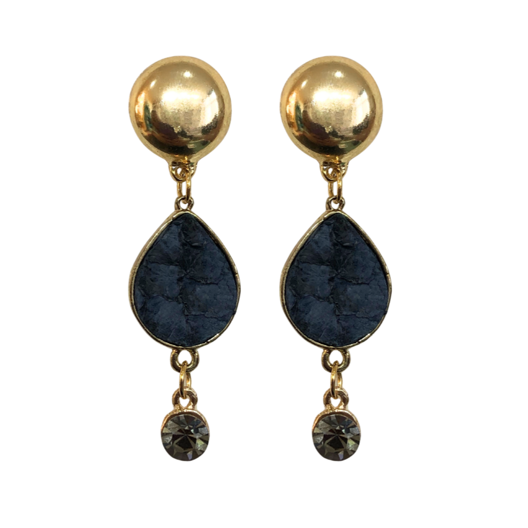 Brinco de Couro de Tilápia Azul Marinho com Pedra Cinza BG1996 – Daniela Curvelo
