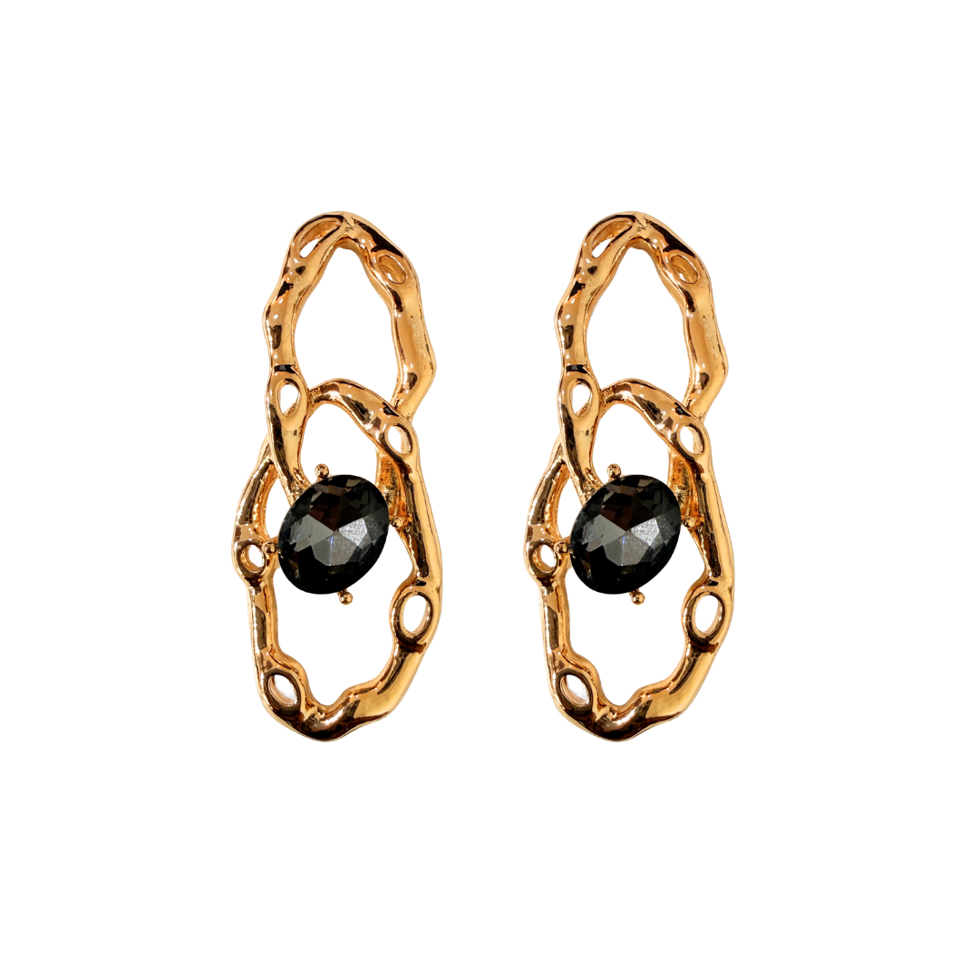 Brinco Grande Elos Dourado com Cristal Cinza BG2158 - Daniela Curvelo