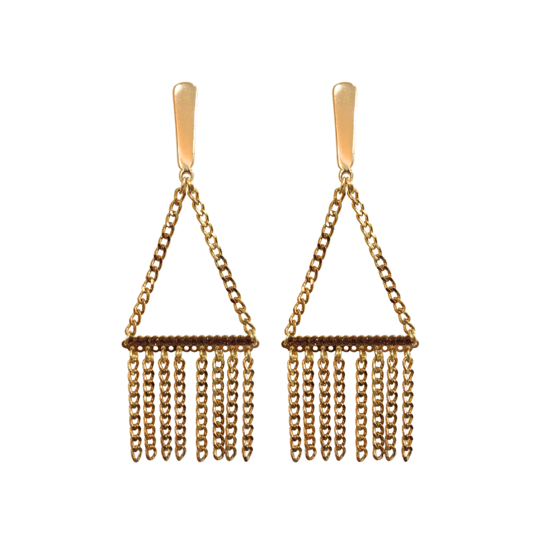 Brinco Grande Triangular Dourado com Correntes e Strass Marrom BG2171 - Daniela Curvelo