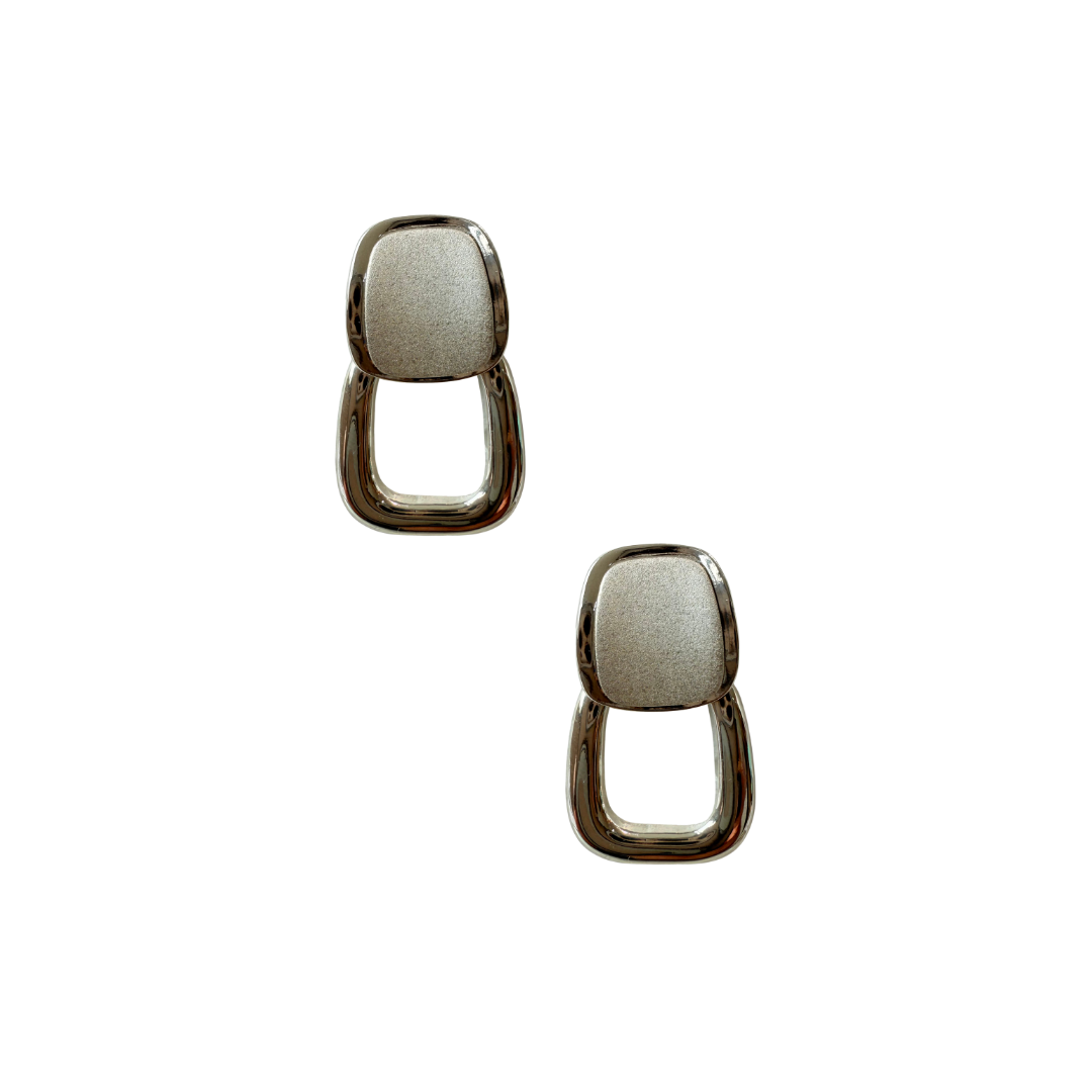Brinco médio de aço prata fosco com quadrado pendurado, um modelo moderno e minimalista que traz elegância e personalidade ao visual. O acabamento fosco deixa a peça sofisticada e o detalhe geométrico acrescenta estilo contemporâneo.