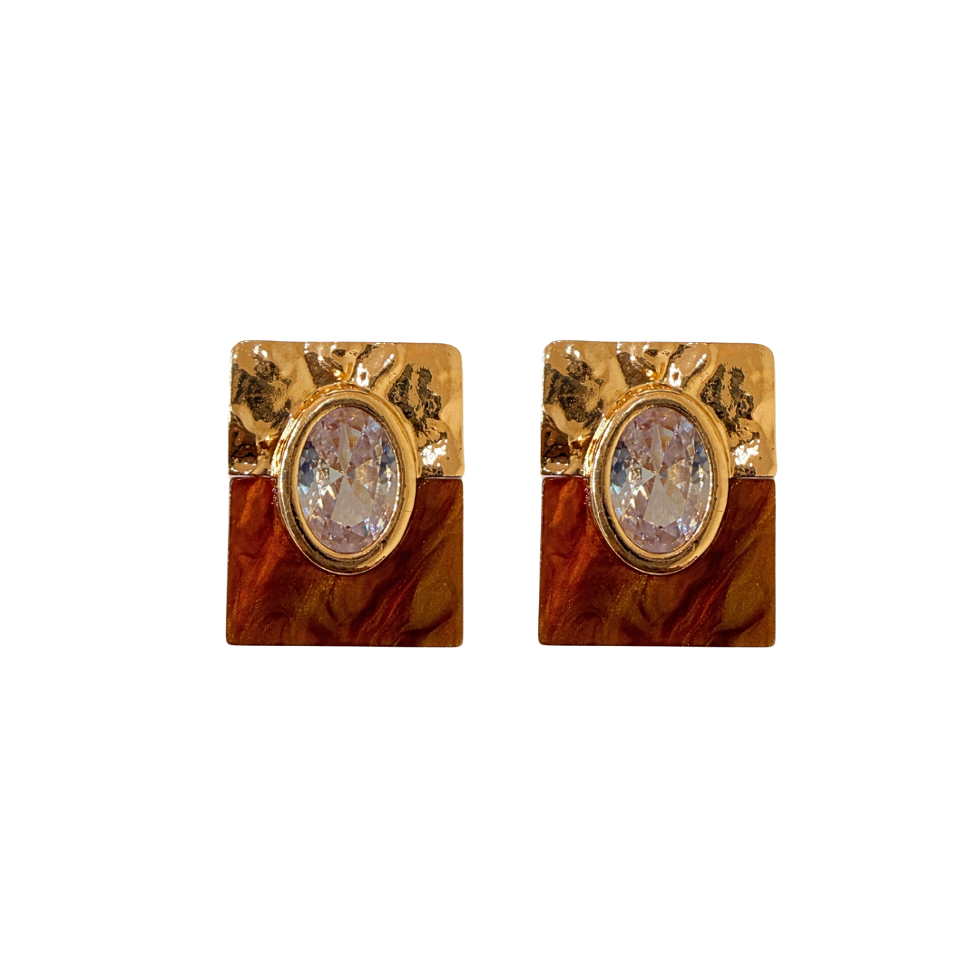 Brinco Médio Retângulo Dourado com Perolado Marrom e Cristal Branco BM2162 - Daniela Curvelo