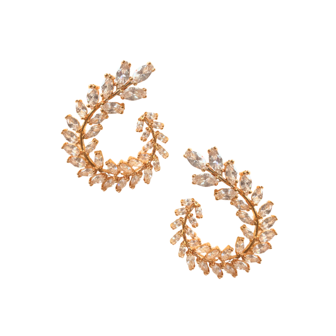 Brinco Médio Semijoia Dourada Folhagens com Zircônias BM2094 - Daniela Curvelo
