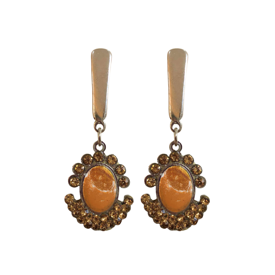 Brinco Pendurado com Resina Laranja e Strass Dourado BG2048 - Daniela Curvelo