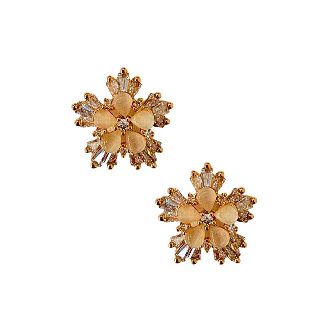 • Estilo: brinco floral dourado com pedra natural e brilho delicado