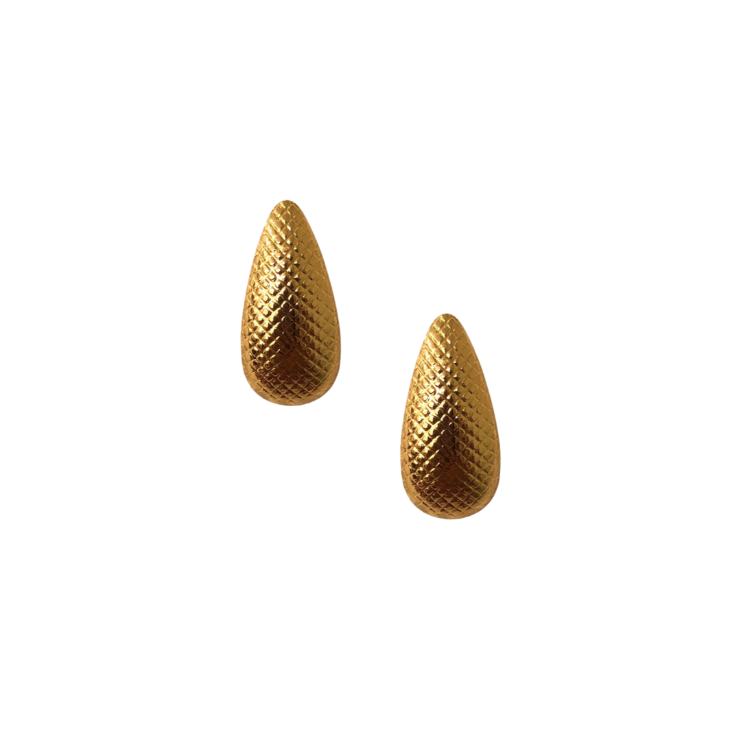 Brinco pequeno gota dourada de aço texturizada, com acabamento moderno e brilho elegante. O formato de gota com textura diferenciada traz sofisticação e personalidade para a produção, sendo ideal para quem busca brinco dourado pequeno de aço com estilo atemporal. Peça resistente, leve e prática para o dia a dia, perfeita para compor combinações ou usar sozinha com destaque.