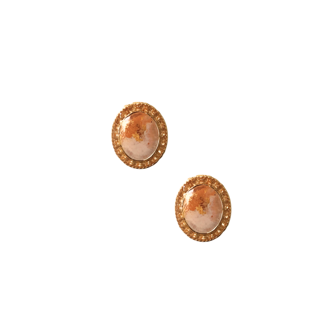 Brinco Pequeno Oval Resinado Rosa Claro, Laranja e Dourado BF1332 - Daniela Curvelo