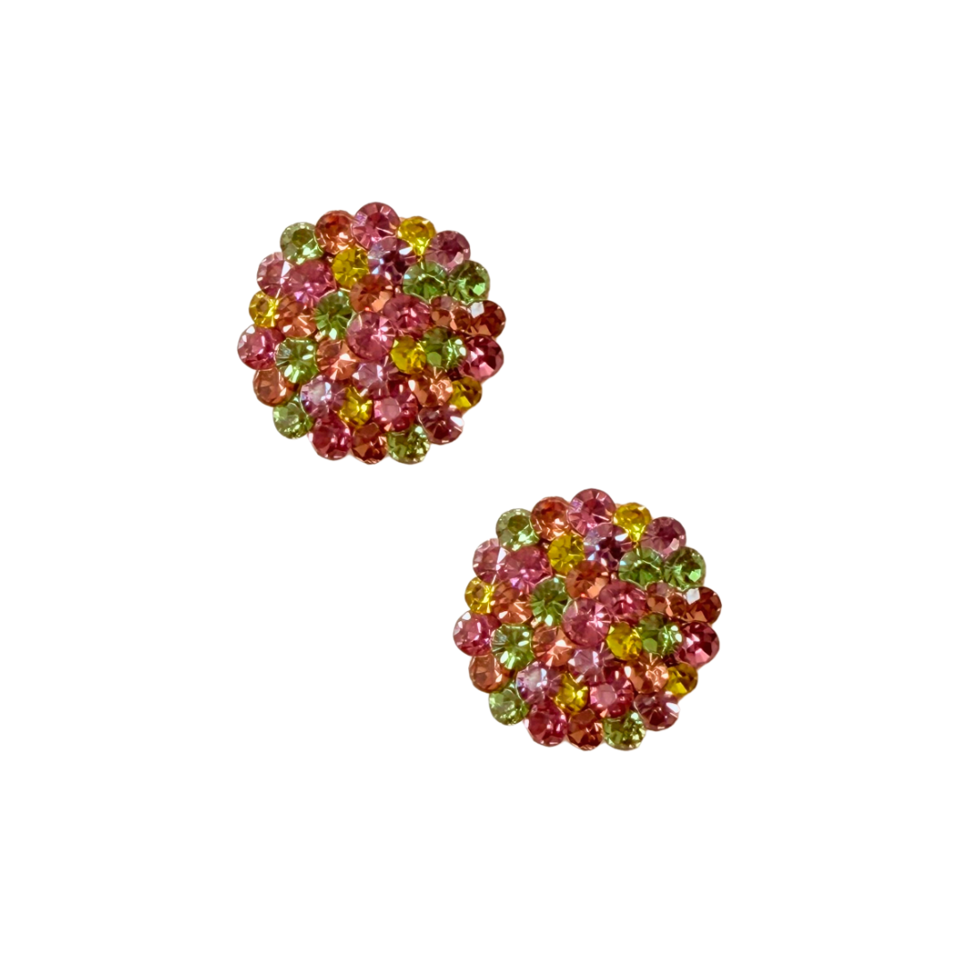 Brinco Pequeno Redondo de Strass Citrine, Rosê, Lilás, Rosa Claro e Verde Folha BF1325 - Daniela Curvelo