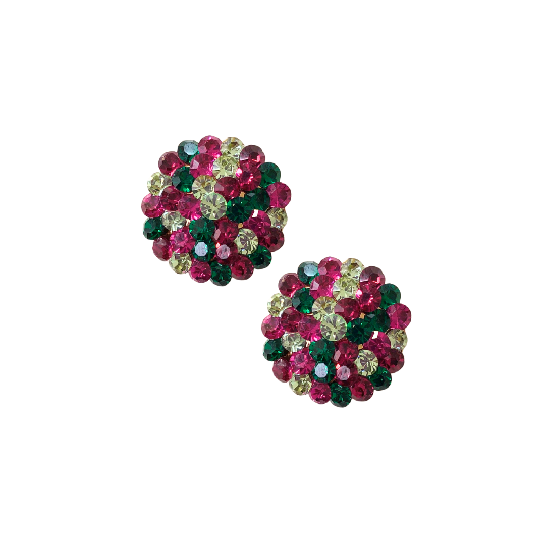 Brinco Pequeno Redondo de Strass Verde Menta, Verde Esmeralda, Rubi e Pink BF1294 - Daniela Curvelo Brinco pequeno redondo feito à mão, exclusivo e artesanal, desenvolvido com strass em cores vibrantes que garantem brilho intenso e acabamento refinado. A combinação do verde menta, verde esmeralda, rubi e pink cria um visual elegante e moderno, ideal para quem busca um acessório leve, colorido e com destaque.
