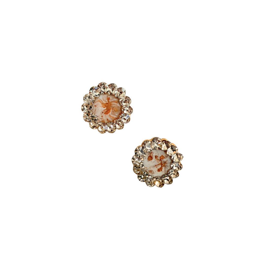 Brinco Pequeno Redondo Resinado Branco com Dourado e Strass BF1334 - Daniela Curvelo