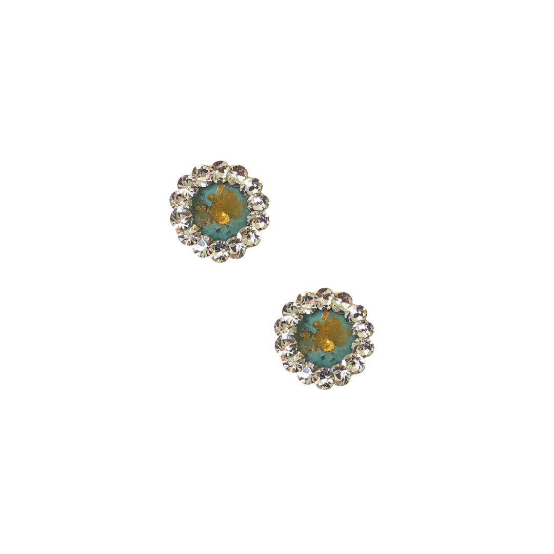 Brinco Pequeno Redondo Resinado Verde Água com Dourado e Strass BF1333 - Daniela Curvelo