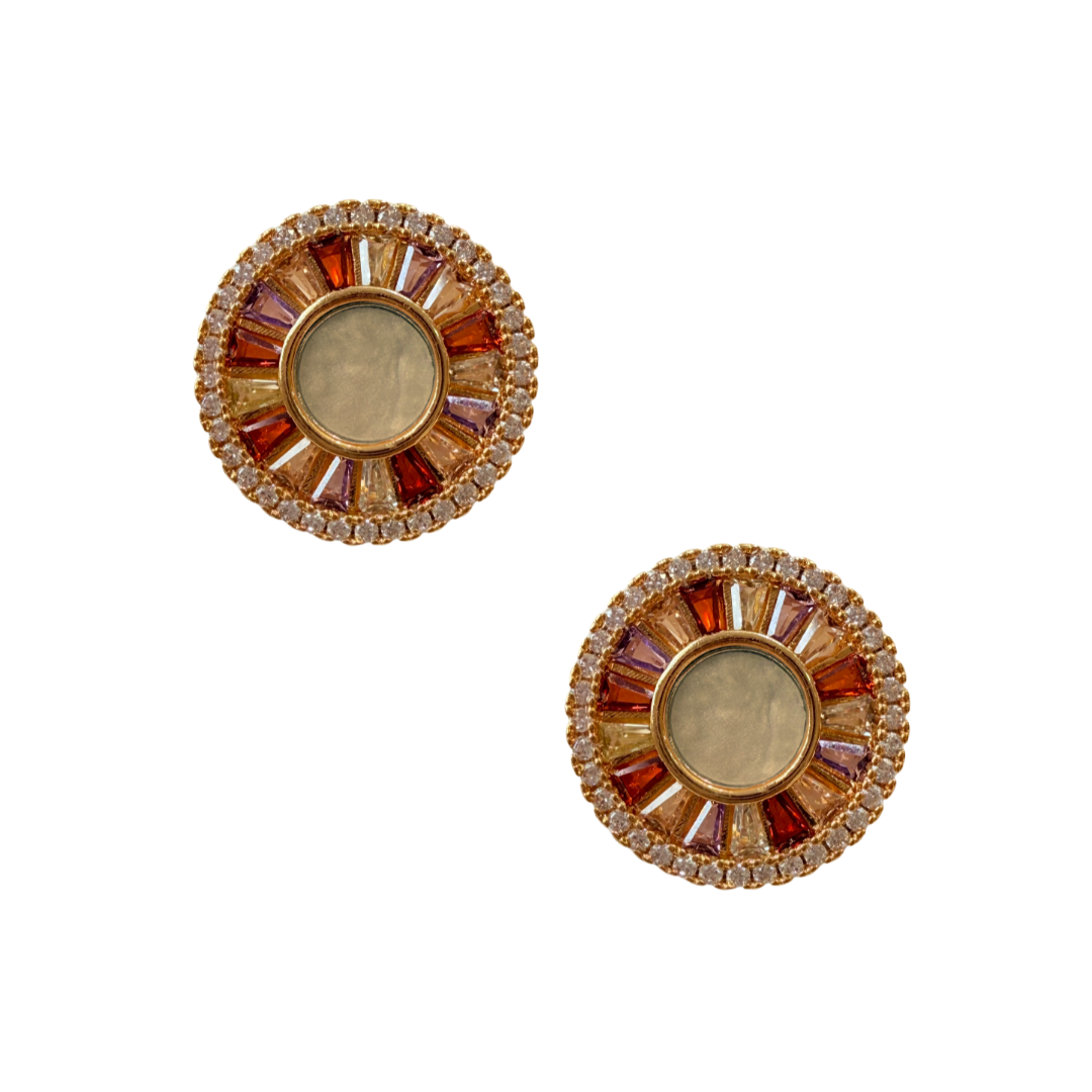 Brinco Pequeno Redondo Semijoia Dourado com Zircônias Coloridas e Madre Pérola BF1315 - Daniela Curvelo
