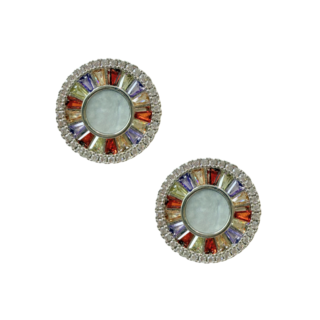 Brinco Pequeno Redondo Semijoia Prata com Zircônias Coloridas e Madre Pérola BF1316 - Daniela Curvelo