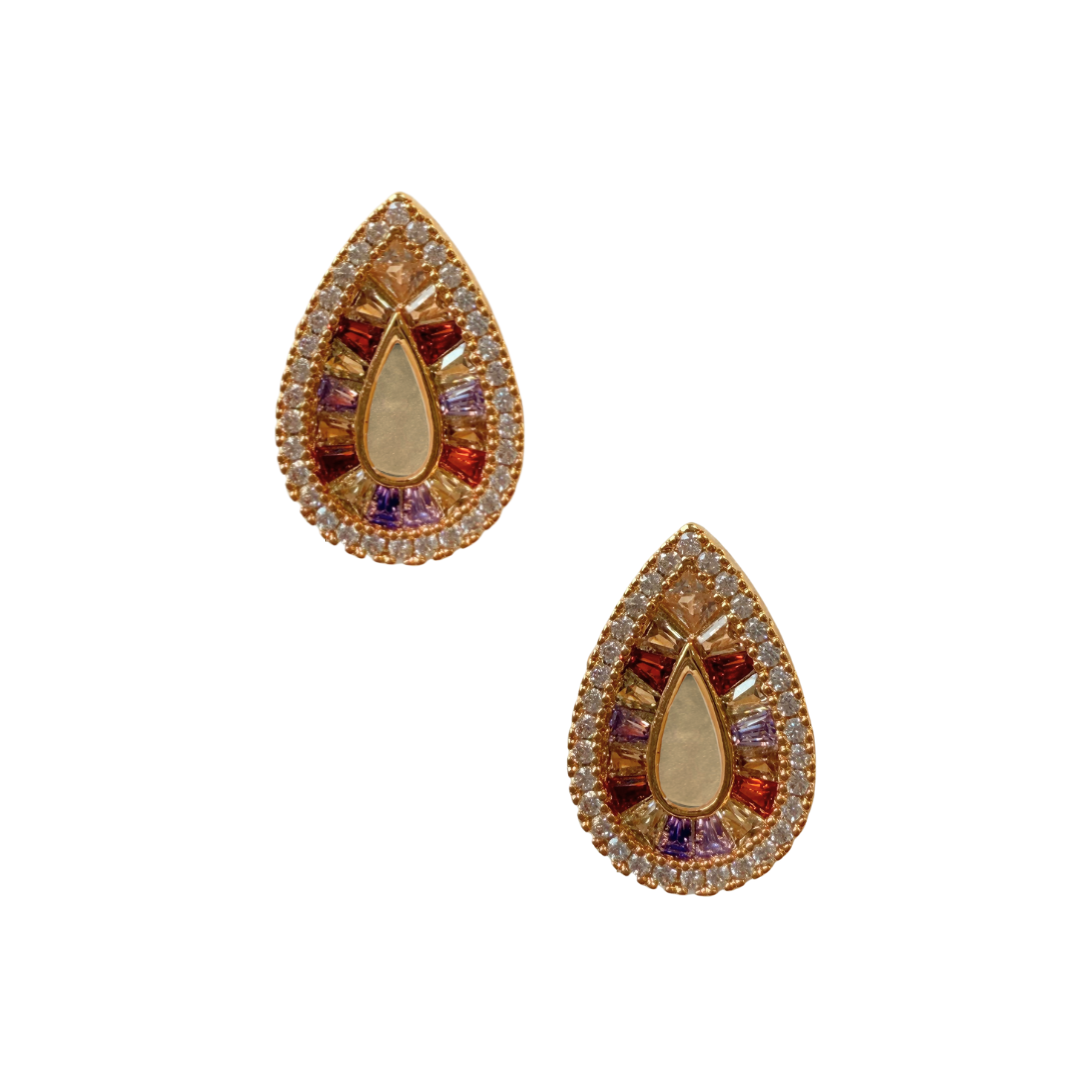 Brinco Pequeno Semijoia Gota Dourada com Zircônias Coloridas e Madre Pérola BF1317 - Daniela Curvelo