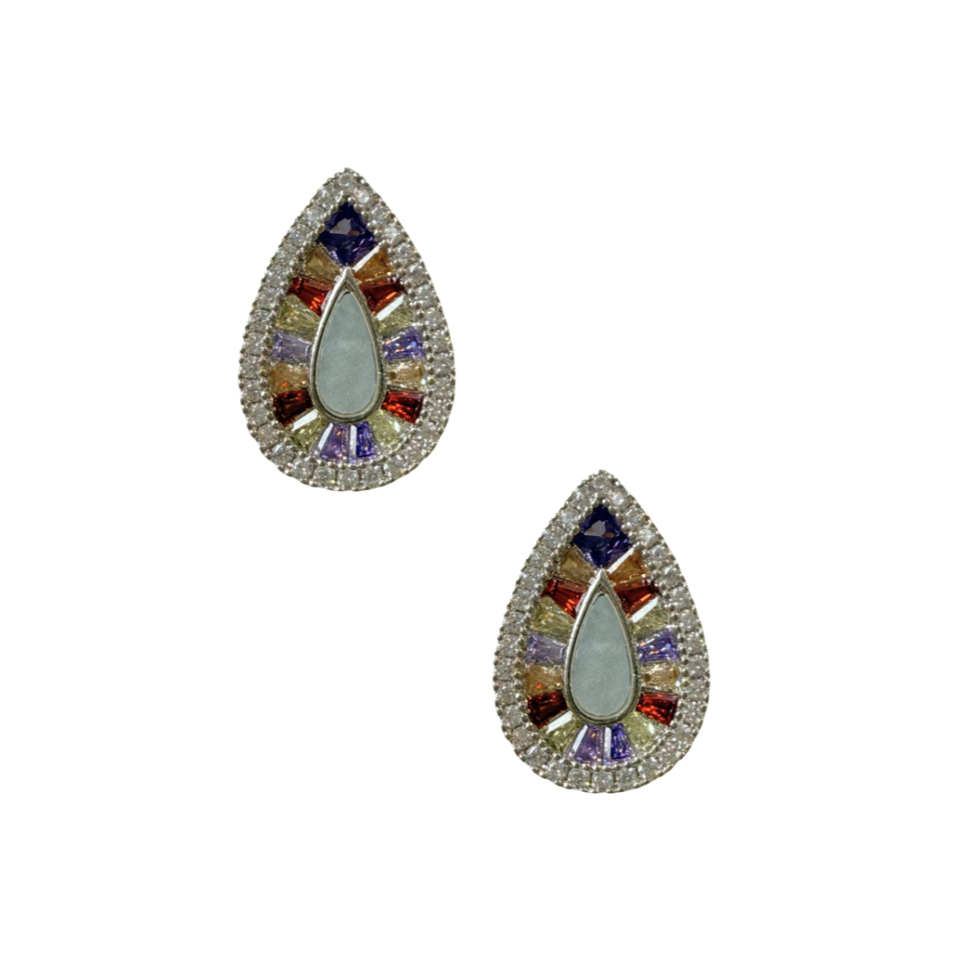 Brinco Pequeno Semijoia Gota Prata com Zircônias Coloridas e Madre Pérola BF1318 - Daniela Curvelo