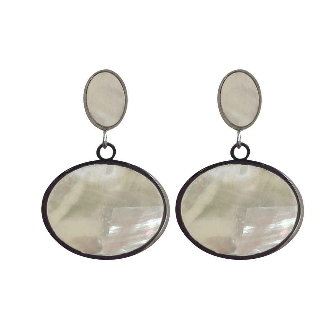 Brinco Prata de Aço Oval com Madre Pérola BM2029 - Daniela Curvelo