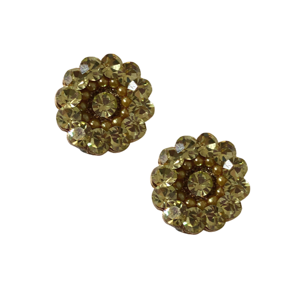 Brinco redondo artesanal feito à mão na loja Daniela Curvelo, com acabamento em strass e pérolas manteiga. Uma peça exclusiva que une delicadeza, brilho e sofisticação, perfeita para valorizar a beleza feminina em qualquer ocasião.