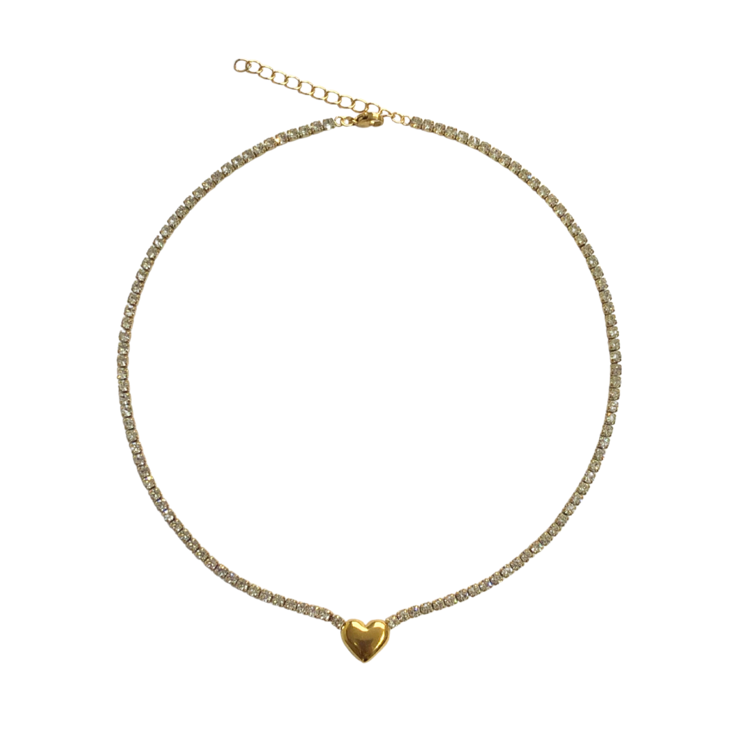 Choker de Aço Dourado com Strass e Pingente de Coração CL811 - Daniela Curvelo