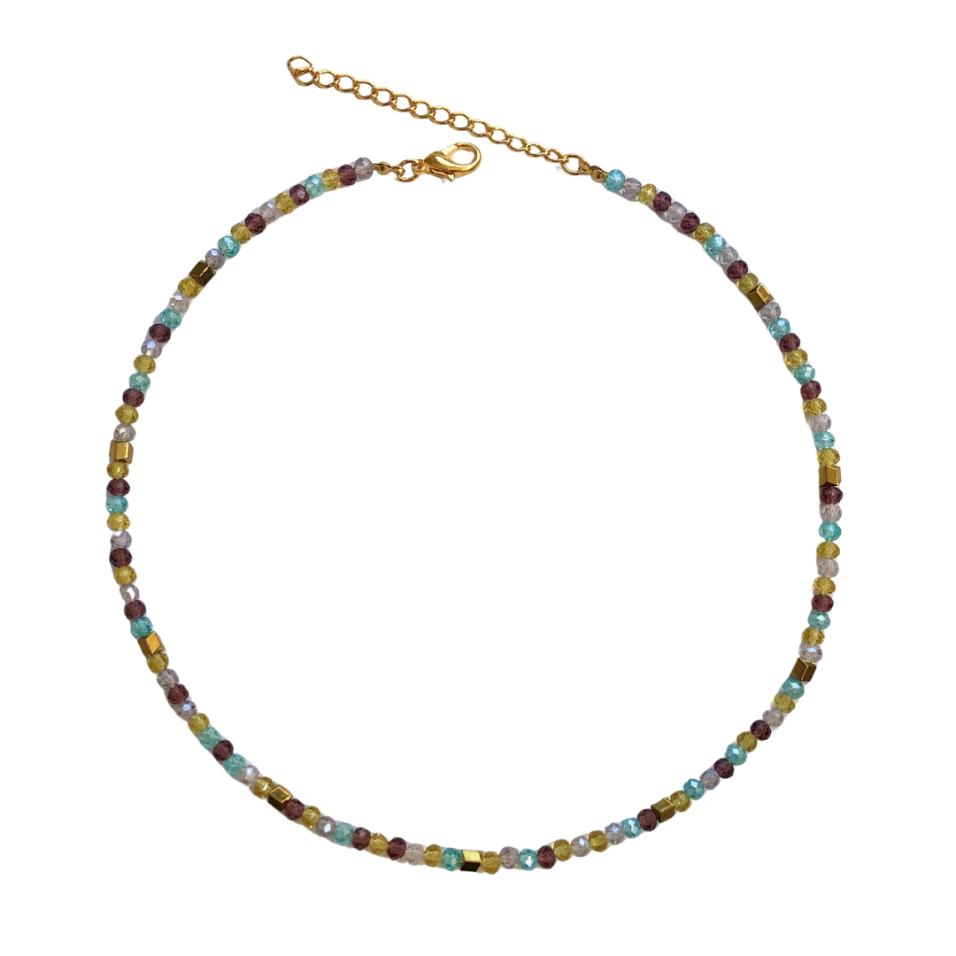 Choker de Cristais Azul Claro, Lilás, Amarelo, Roxo e Hematita Dourada CL817 - Daniela Curvelo