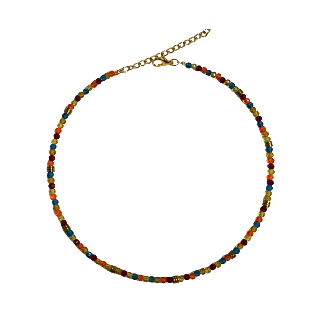 Choker de Cristais Laranja, Caramelo, Vermelho, Azul Petróleo, Amarelo Candy e Hematita Dourada CL815 - Daniela Curvelo