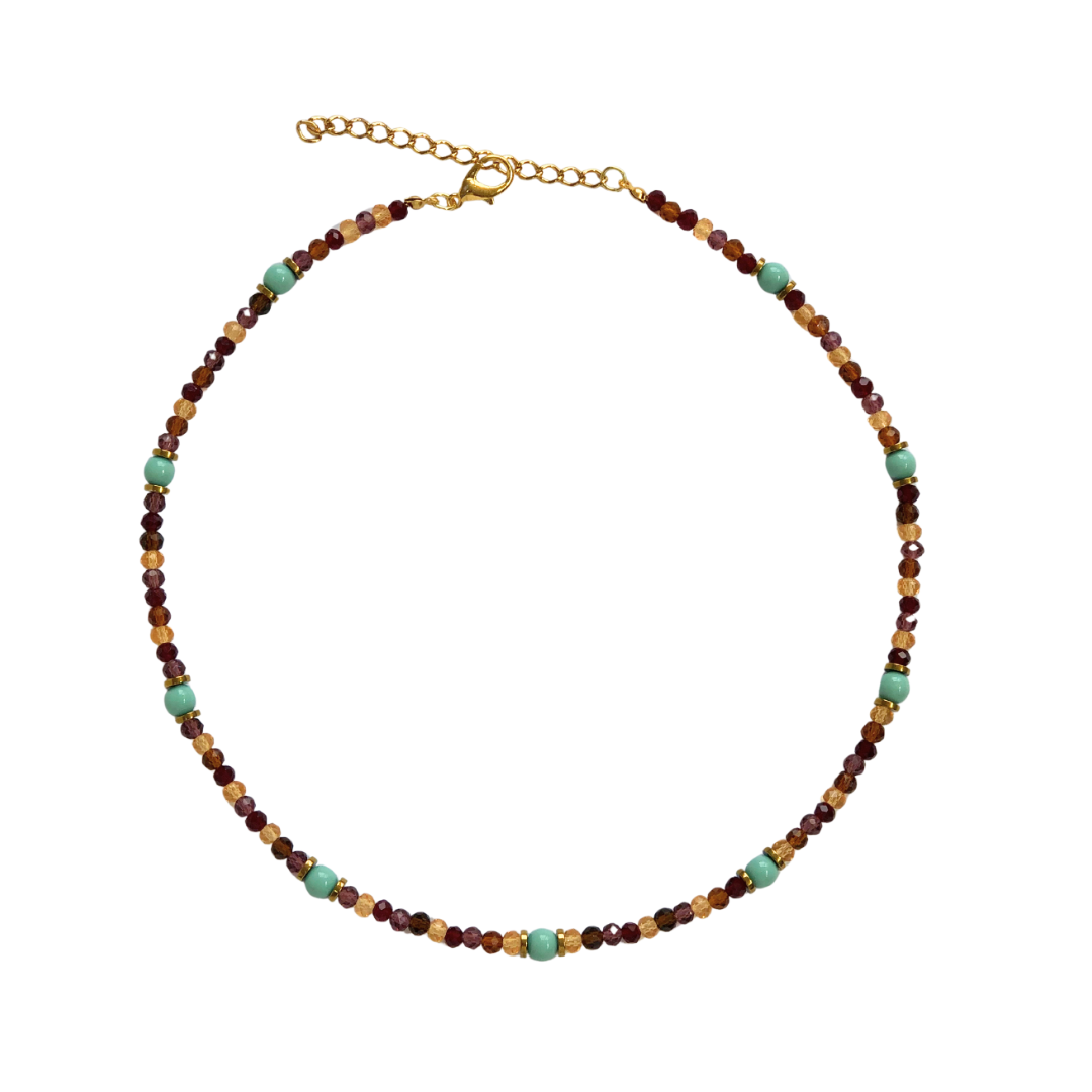Choker de Cristais Tons Outonais com Turquesa e Hematita Dourada CL816 - Daniela Curvelo