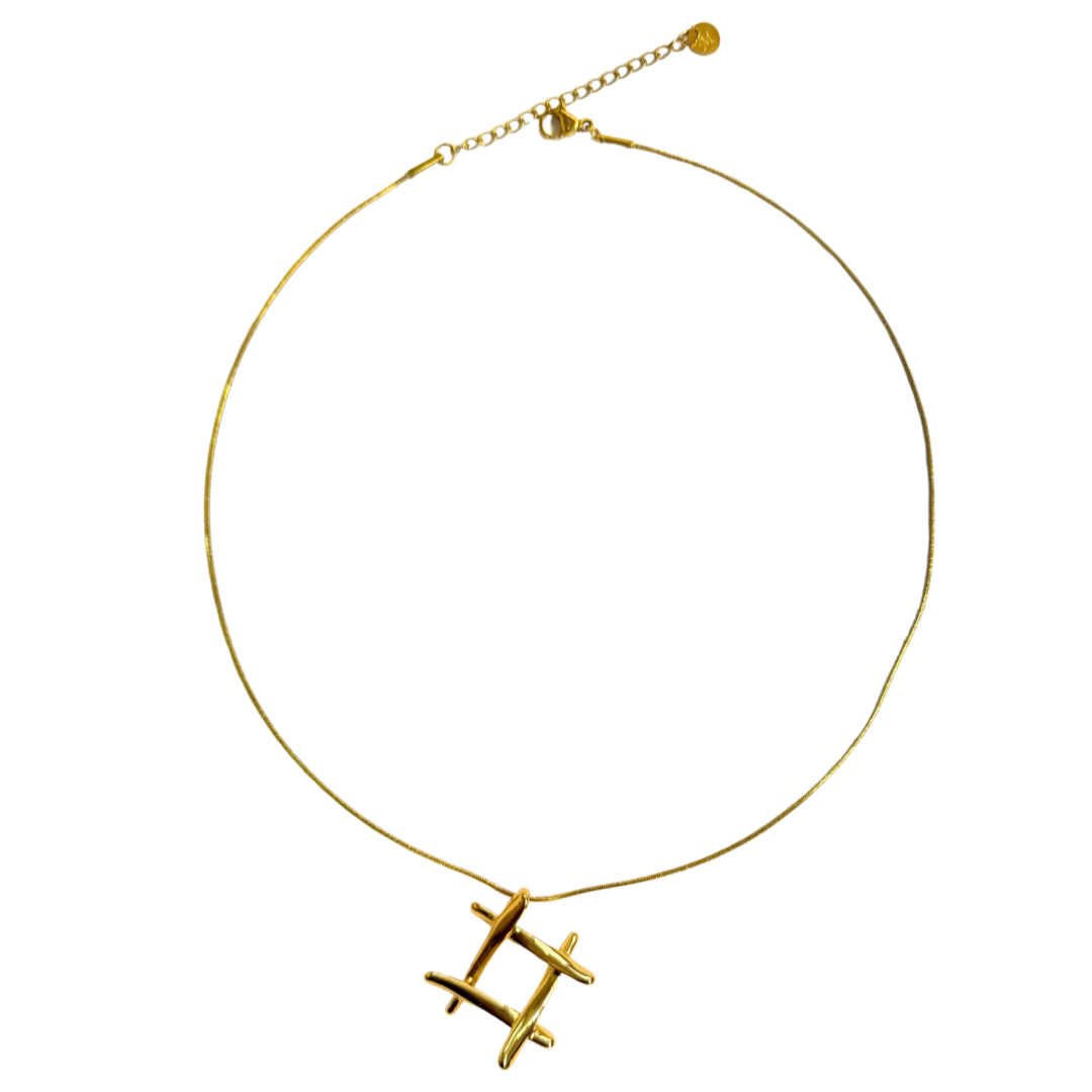 Colar de Aço Dourado com Pingente de Trama CL797 - Daniela Curvelo