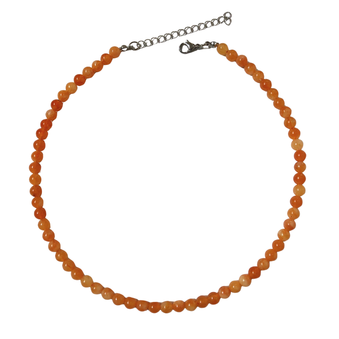 Colar artesanal feito à mão com pedras naturais de ágata laranja da marca Daniela Curvelo. Exclusivo e sofisticado, combina estilo, energia positiva e elegância, perfeito para mulheres que valorizam acessórios únicos e versáteis.