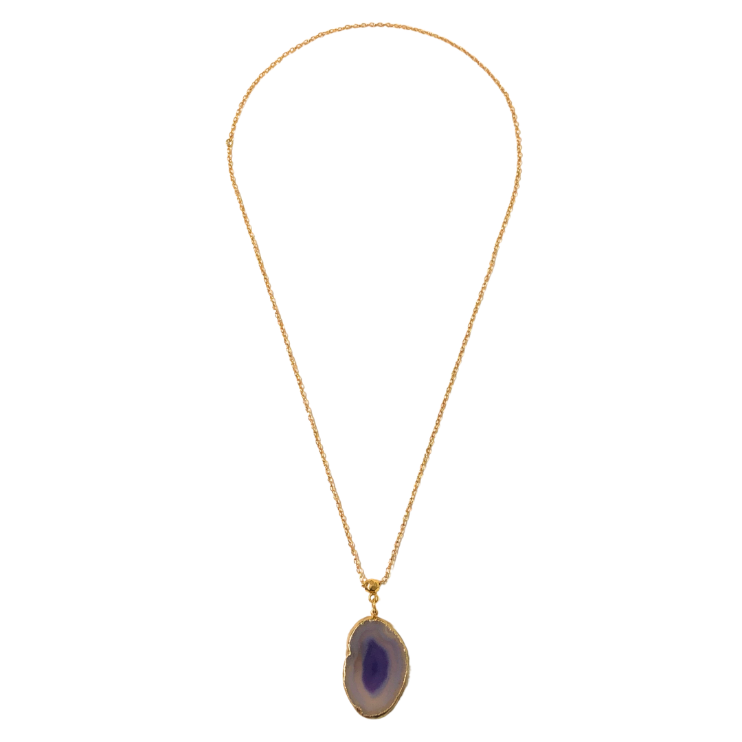 Colar Dourado com Pedra Ágata Roxa CL443 - Daniela Curvelo