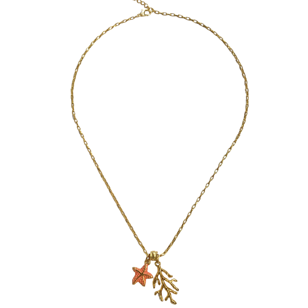 Colar Dourado com Pingente de Coral e Estrela-do-mar CL715 - Daniela Curvelo