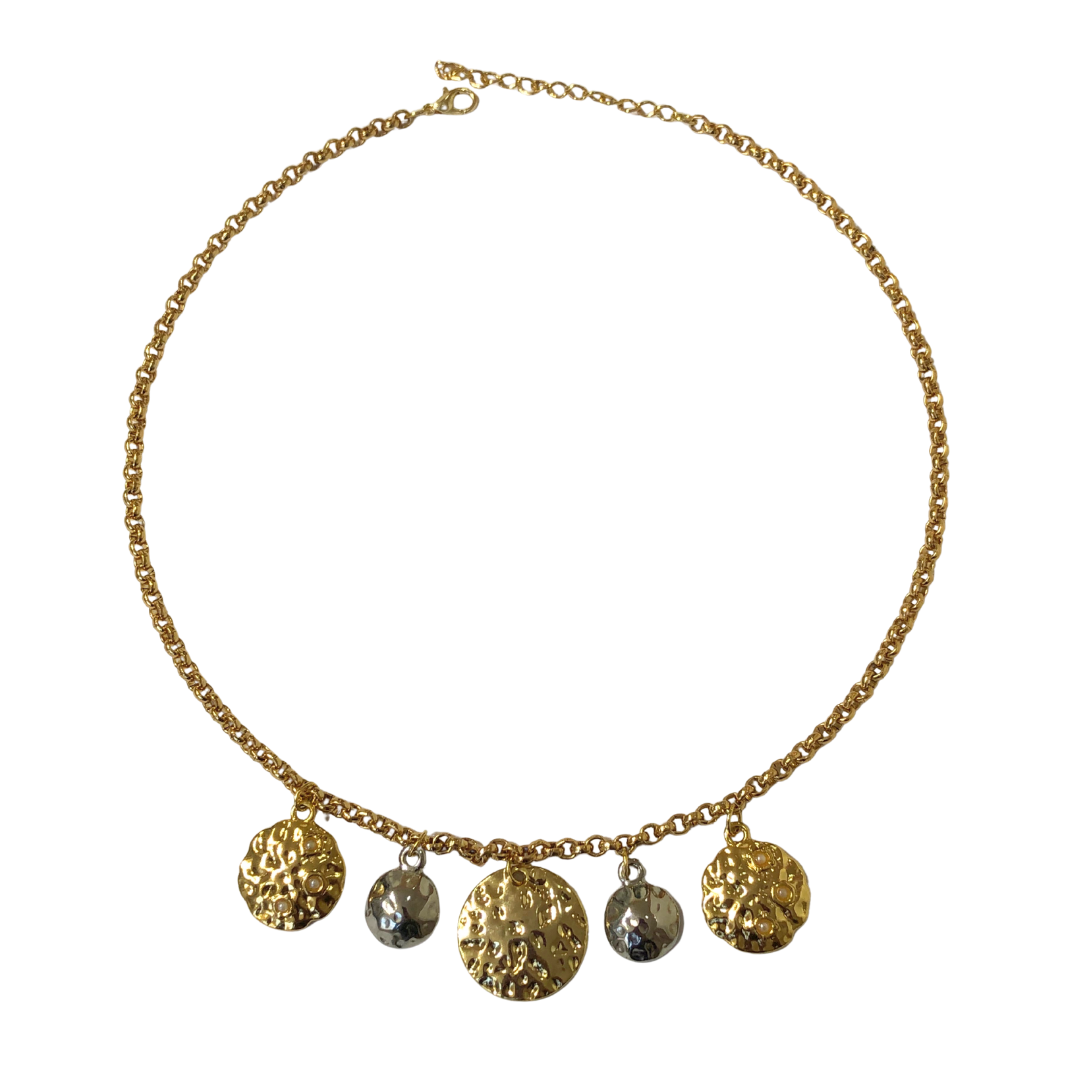 Colar Medalhas Marteladas Prata e Dourado CL736 - Daniela Curvelo