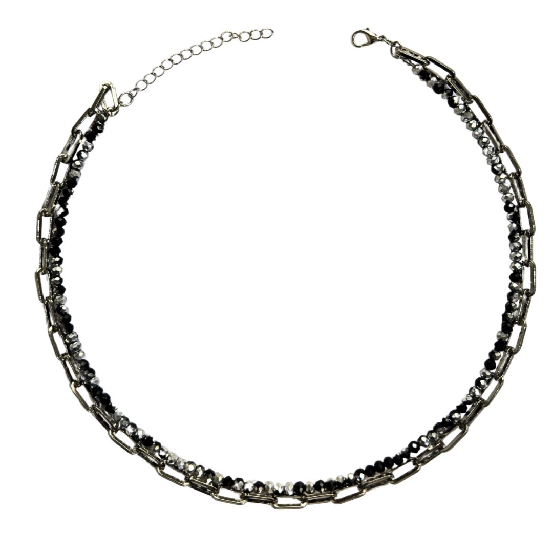 Colar Duplo Cristais Pretos com Prata CL836 – Daniela Curvelo