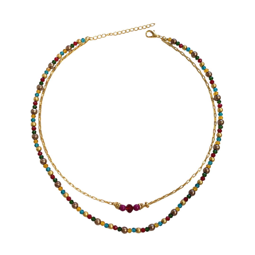 Colar Duplo de Cristais Coloridos e Corrente Dourada CL821 - Daniela Curvelo