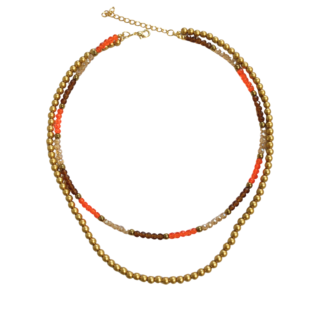 Colar Duplo de Cristais Laranja, Marrom e Doce de Leite com Hematita e Pérolas Douradas Foscas CL777 - Daniela Curvelo