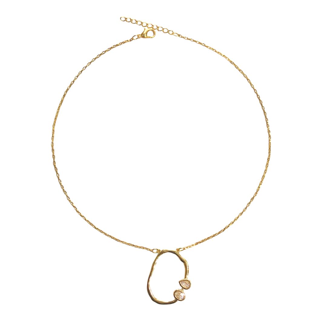 Colar Forma Orgânica Dourada com 2 Gotas de Zircônia CL517 - Daniela Curvelo