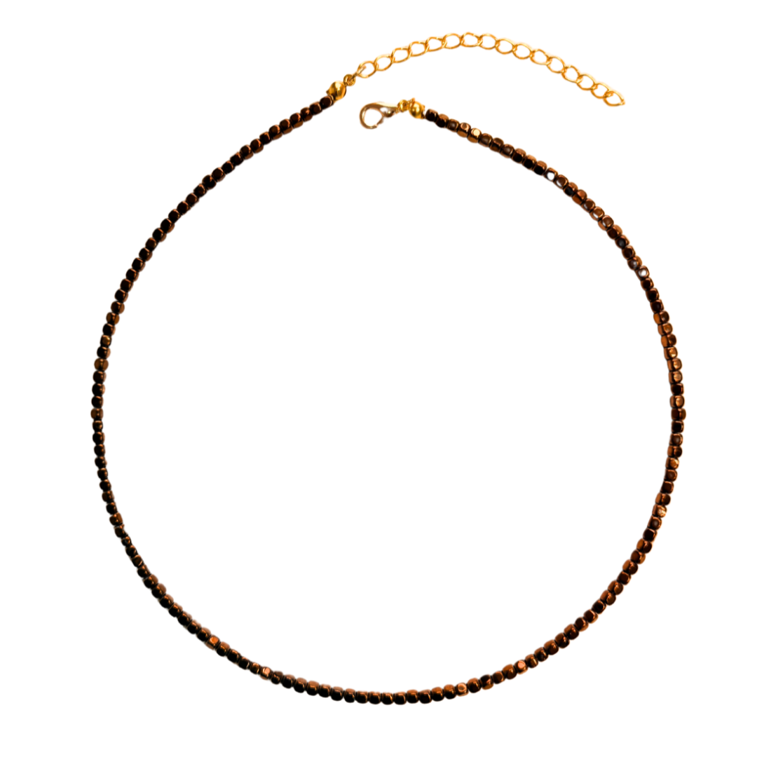 COLAR PEDRA NATURAL HEMATITA MARROM CL830 – DOURADO