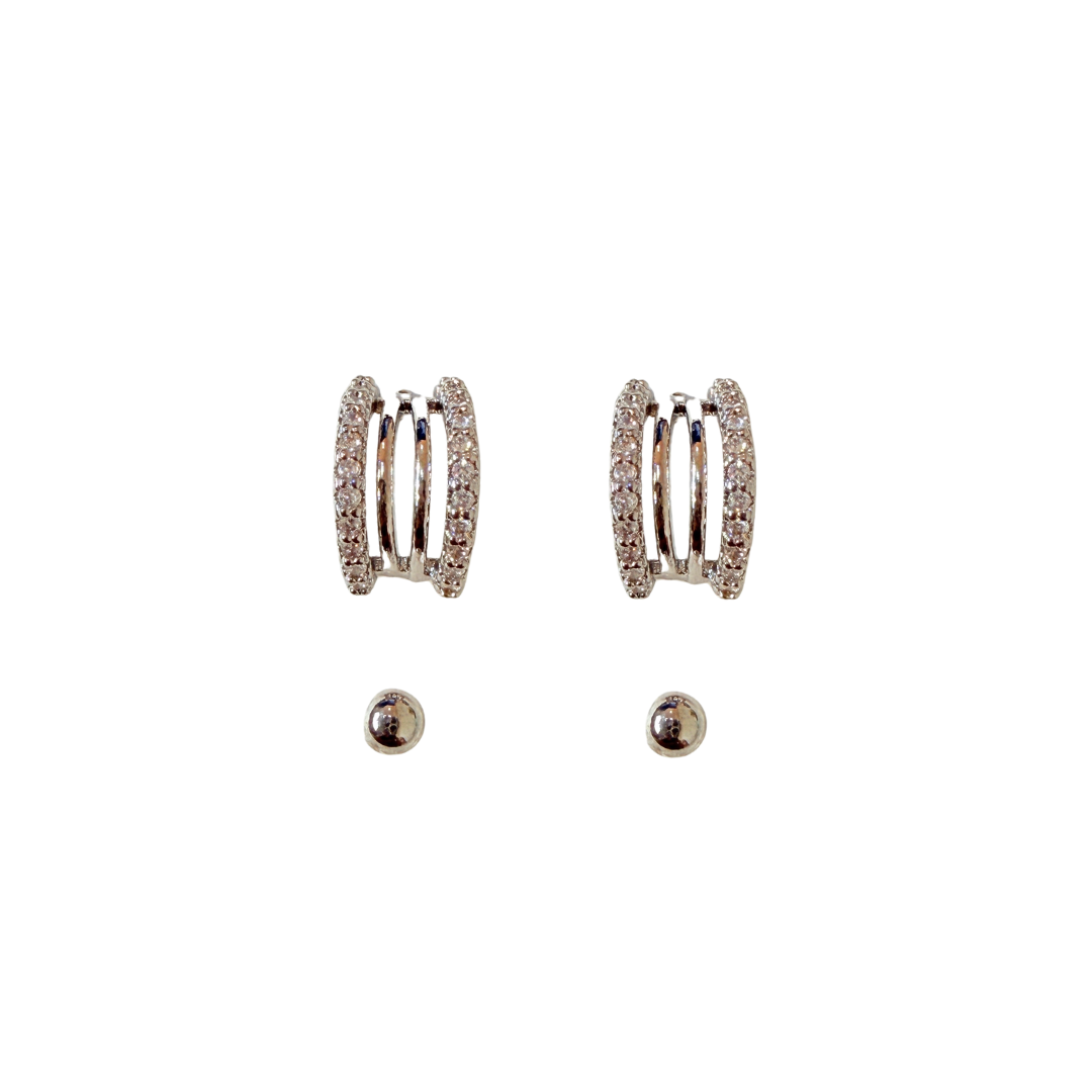 Kit Segundo Furo Brincos Prata Argolinha com Zircônias e Bolinha BF1363 - Daniela Curvelo