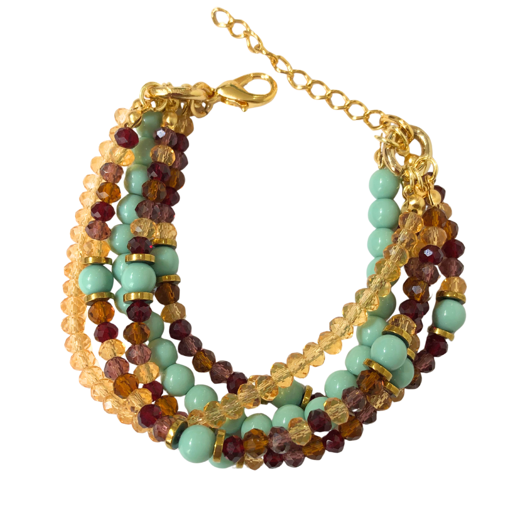 Pulseira de 5 Voltas de Cristais Tons Outonais com Turquesa e Hematita Dourada 838P - Daniela Curvelo