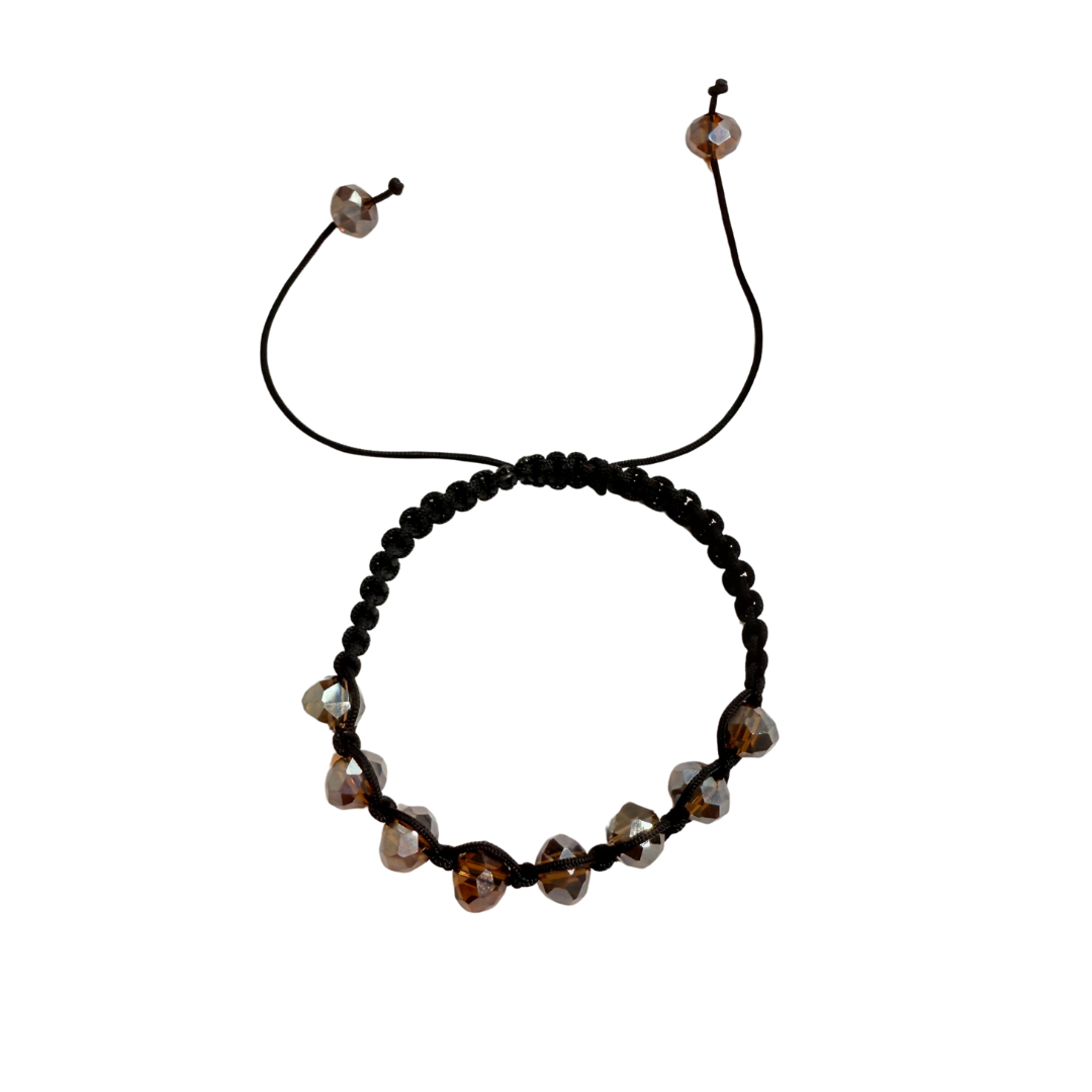 A Pulseira de Cristais Marrom Brilhante com Preto 794P é uma peça artesanal feita à mão na loja Daniela Curvelo. Combinando cristais marrom e fio preto, ela traz elegância e sofisticação em cada detalhe. O fecho em macramê garante conforto e ajuste perfeito, tornando-a uma pulseira exclusiva, versátil e moderna — ideal para destacar o seu estilo com brilho e personalidade.