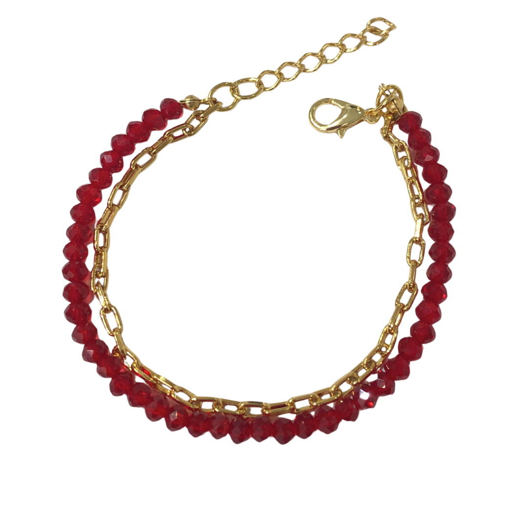 Pulseira de Cristais Marsala com Corrente Dourada - Daniela Curvelo