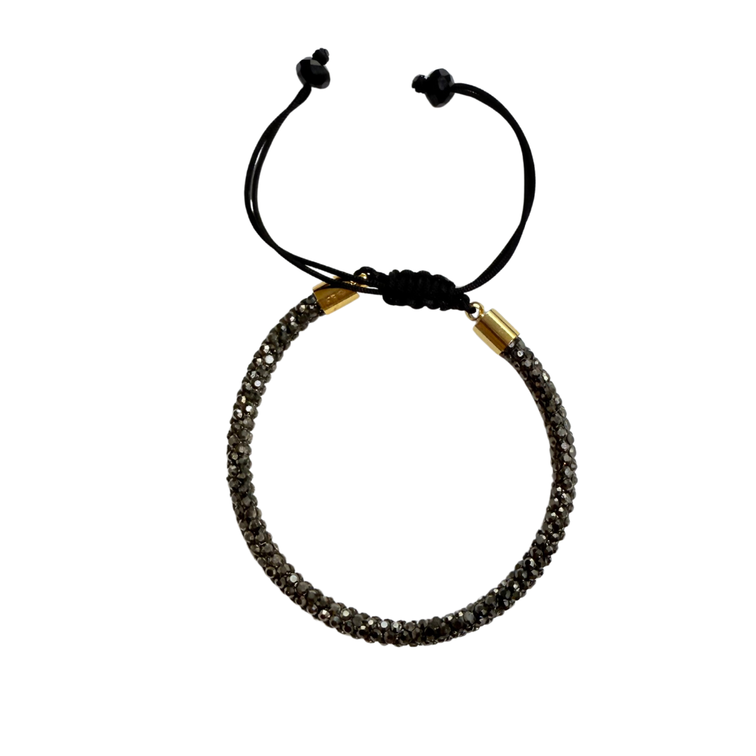 Pulseira de Tubo de Strass Hematite Macramê 796P - Daniela Curvelo