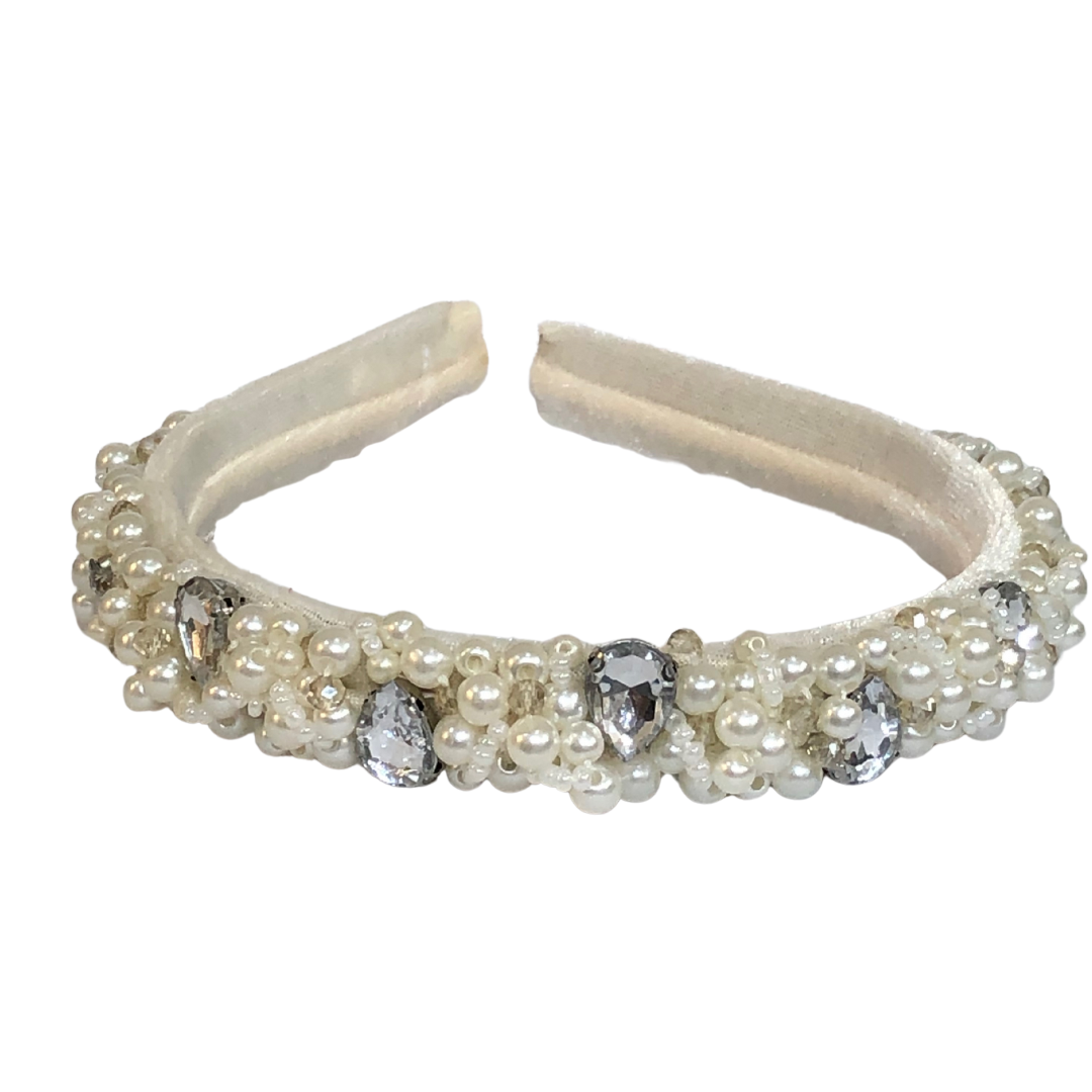 Tiara Bordada de Luxo Média Branca com Pérolas e Pingentes de Gota T453 - Daniela Curvelo